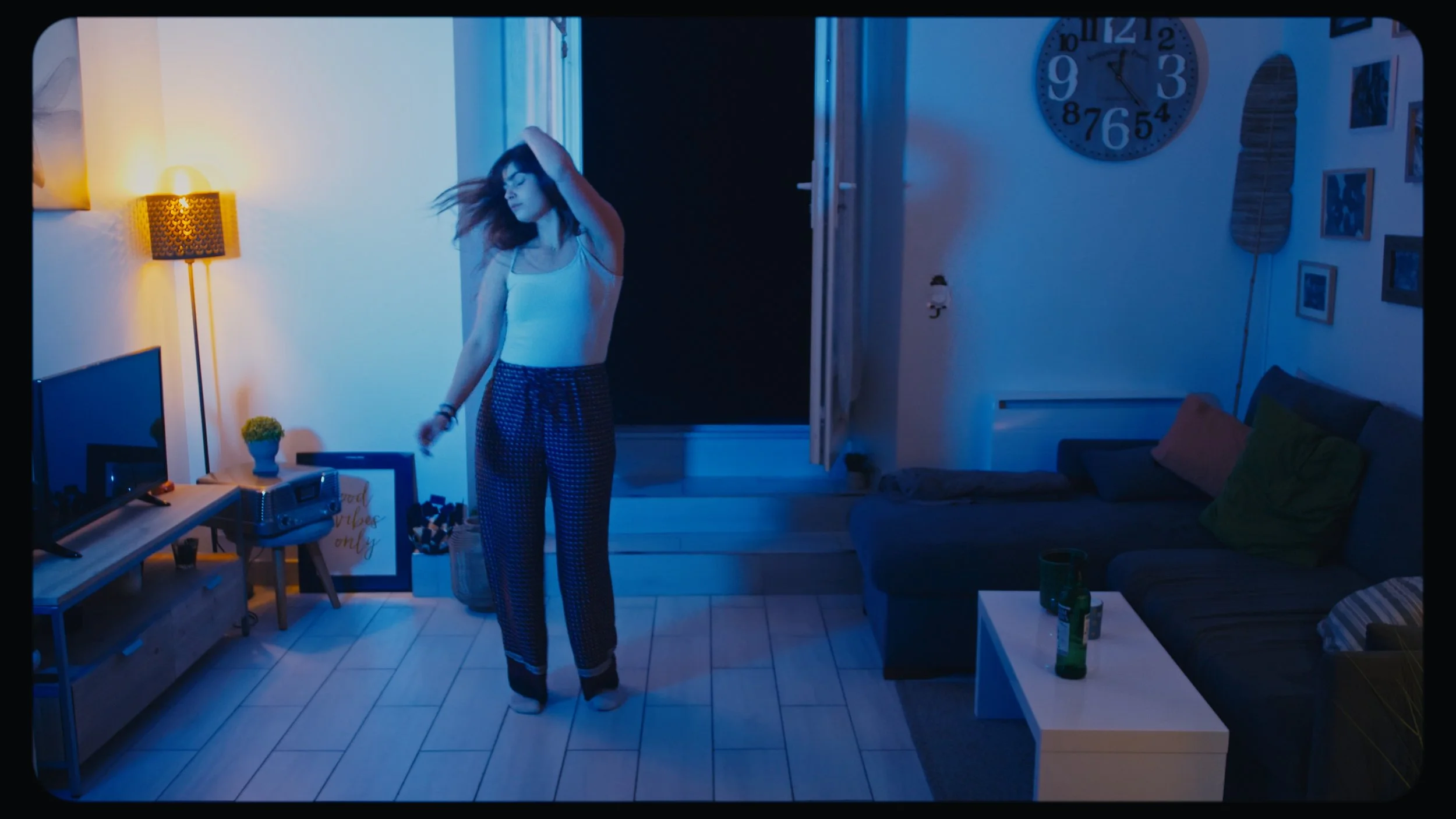 Lola, créatrice de contenu, sourit devant ses abonnées. Mais une fois le live coupé, la solitude s’installe. Ce soir, un intrus vient briser son intimité. Un court-métrage aux couleurs vivent et aux contrastes marqués.